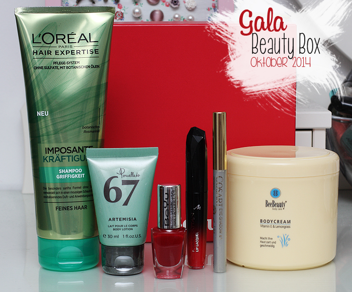 Bereits im letzten Monat habe ich euch die neue Box am Beautyboxen-Sternenhimmel vorgestellt: Die Gala Beauty Box* Auch in diesem Monat habe ich mich wieder über den Inhalt dieser tollen Box gefreut. Die Gala Beauty Box kostet 19,95 € und garantiert einen Warenwert von mindestens 40,00 €. Das ist der Inhalt für Oktober 2014: L’Oréal Paris Hair Expertise | Imposante Kräftigung, Originalgröße {250 ml = 6,99 €}. Imposante Kräftigung – Shampoo Griffigkeit. Die sanfte Formel ohne Sulfate, angereichert mit botanischem Rosmarinöl, reinigt feines Haar besonders sanft und verleiht ihm Struktur und Griffigkeit. Beebeauty | Bodycream Vitamin E & Lemongrass, Originalgröße […]